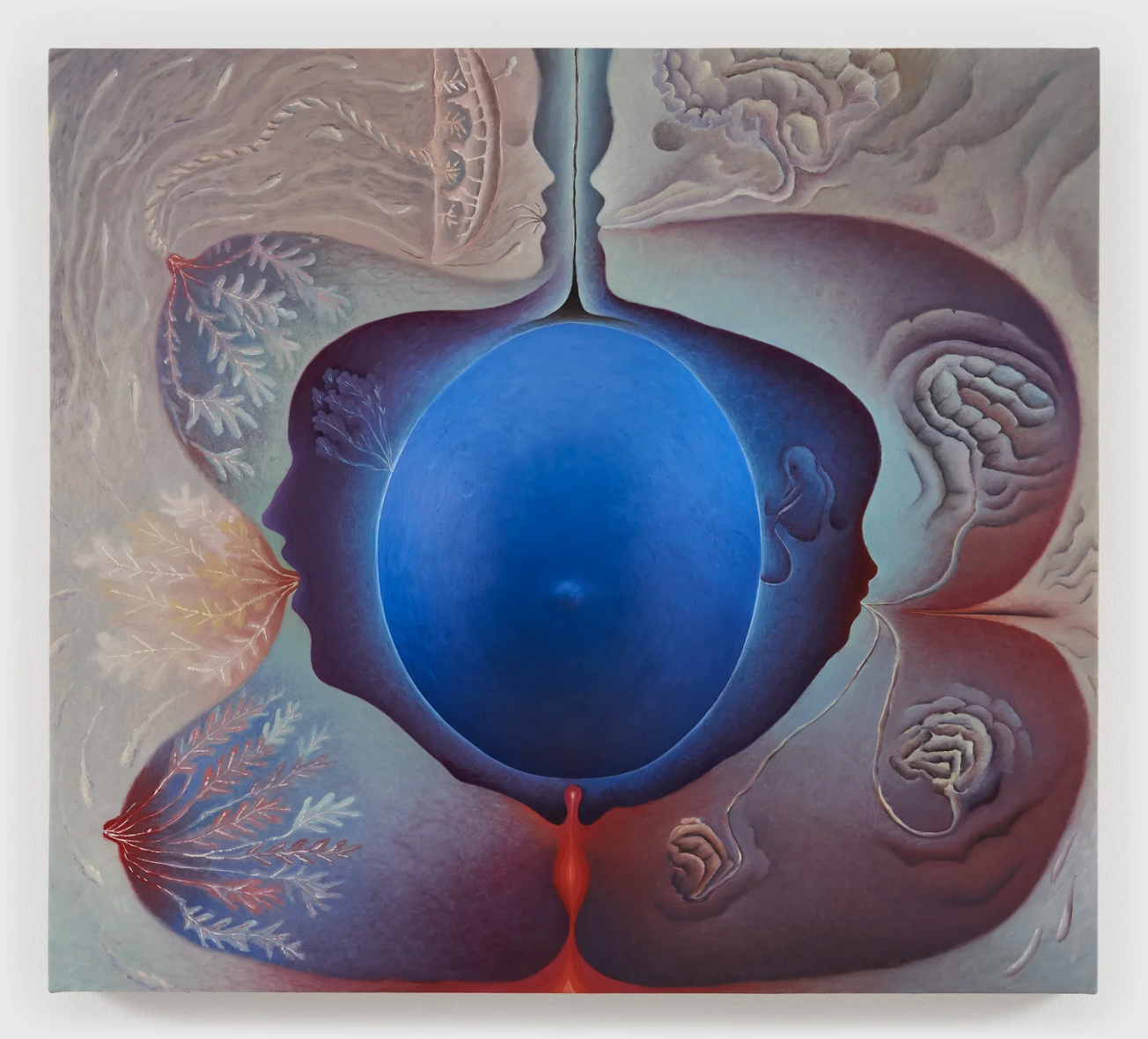 Belly, breast, face, brain, milk ducts, placenta, oil, acrylic medium, aqua resin,